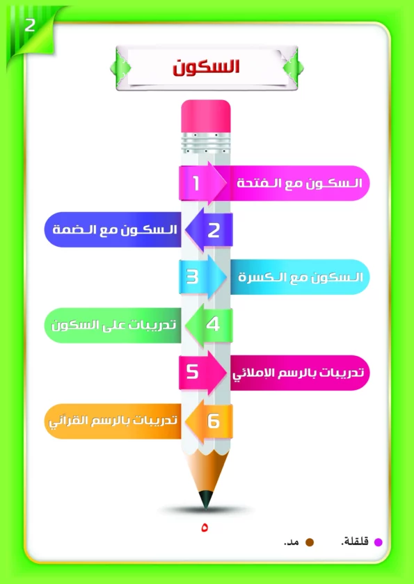 في هذا الكتاب نتعلم طريقـة نطق الحرف الساكن، ونتعرف على التنوين والفرق بينه وبين النون الأصلية، كما نتعلم قاعدة التضعيف وطريقة نطق الحرف المشدد، ونـتدرب عـلى تركيـب وقـراءة وكتابـة مجموعة كبيرة من المفردات يتـجاوز عــددهـا 800 كلمـة مدعمـة بـالصور التوضيحية والمـهـارات الـتفـاعـلـيــة.